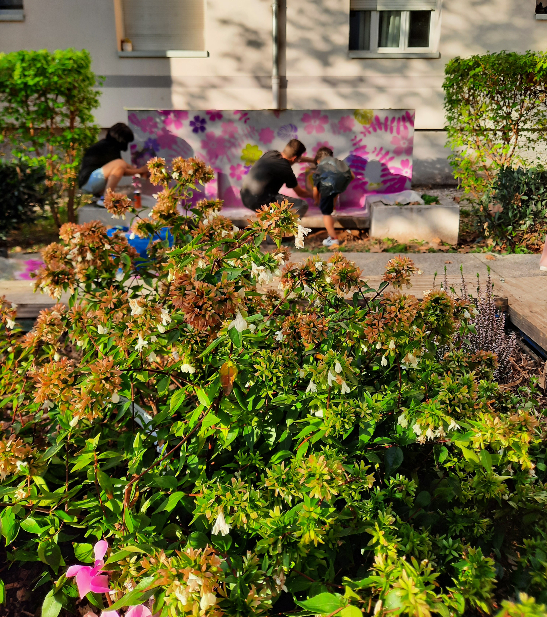 L’association Ma Ville Verte a accompagné la création de ce jardin partagé, par l’animation d’ateliers auprès des locataires tout au long du projet. Les résident·es ont ainsi pu se former aux techniques de compostage, définir le plan du potager, construire les bacs potagers et jardinières en palettes, choisir les plantes à cultiver et organiser une fête des récoltes à l’issue de l’été.