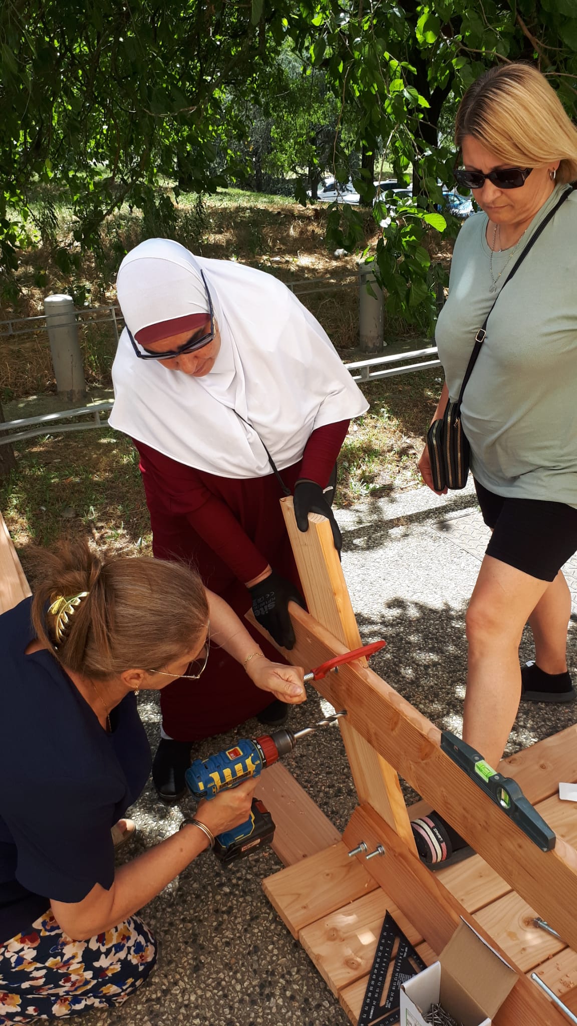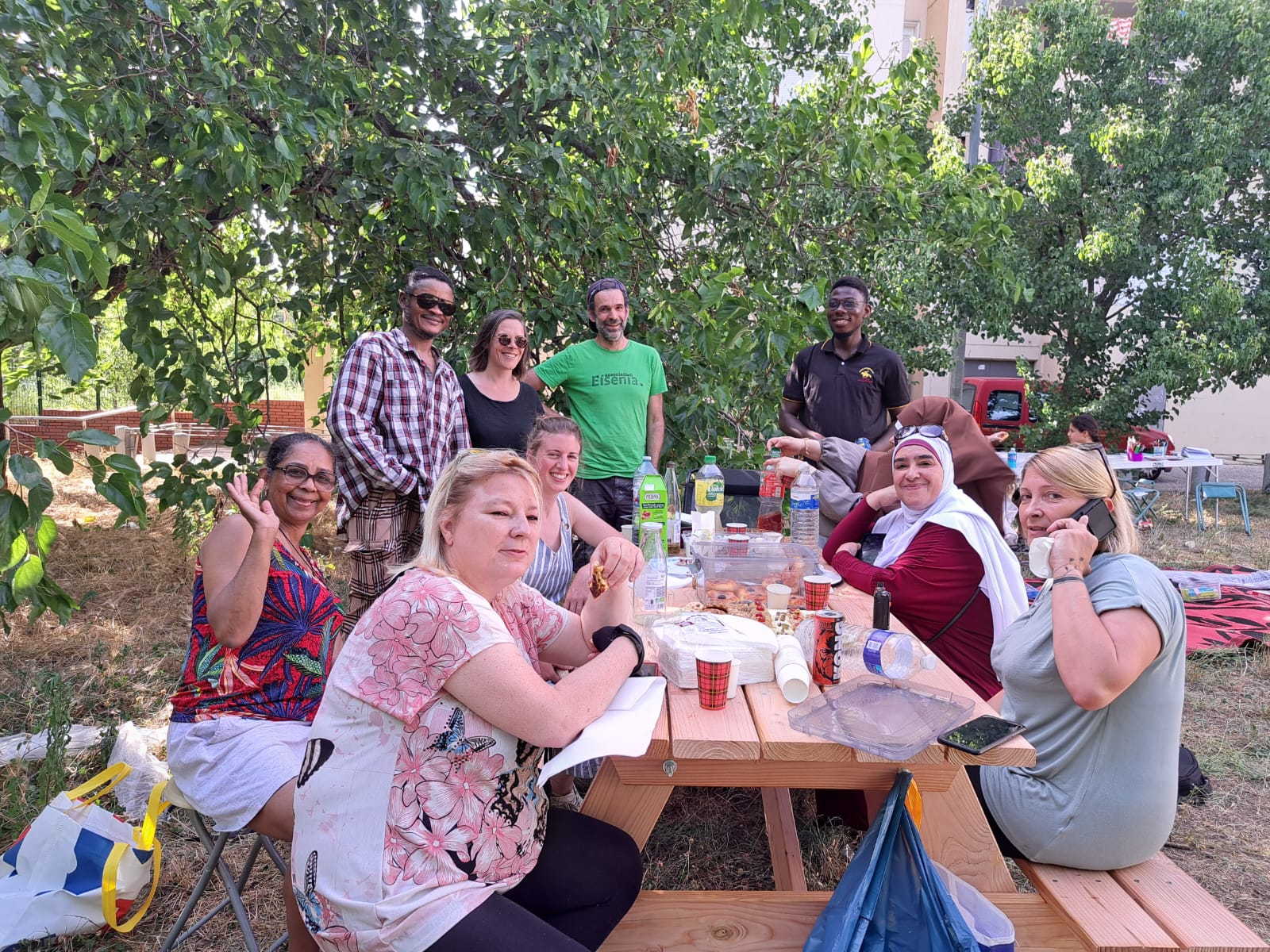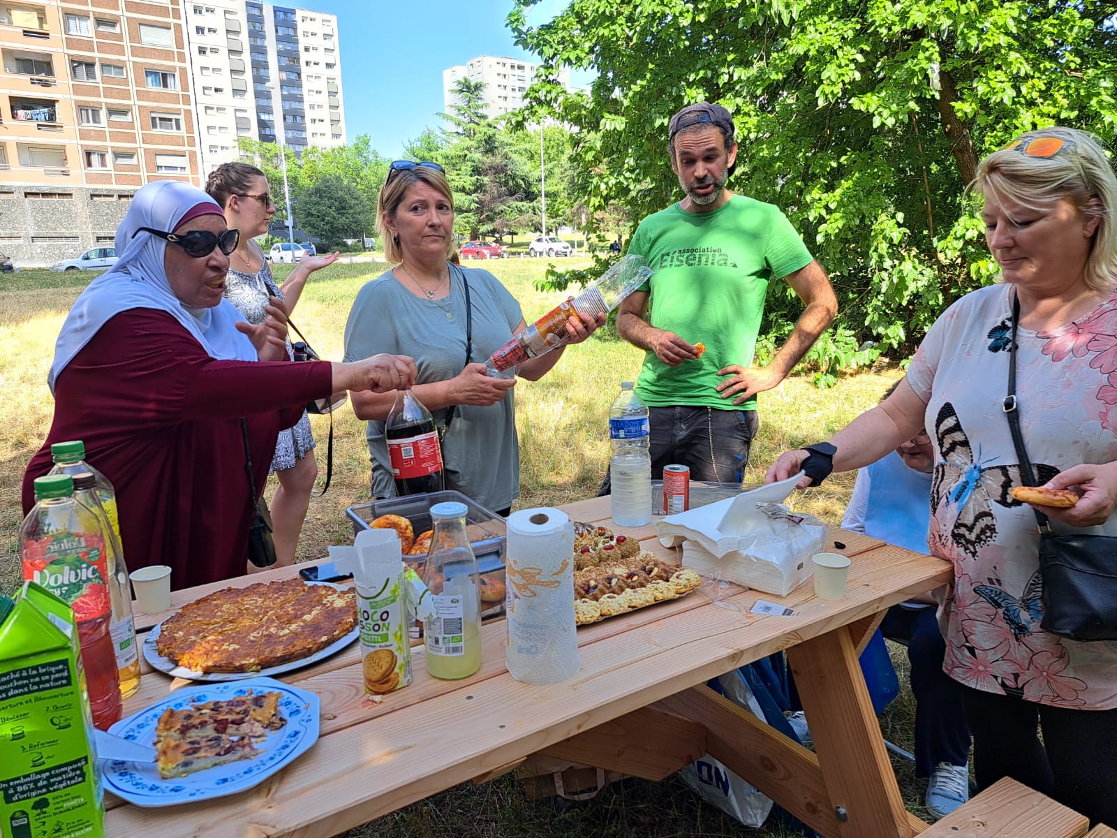 En 2025, un chantier participatif a vu le jour avec ce collectif de locataires, et en partenariat avec l’association Eisénia. Les habitant⸱es ont construit deux tables de pique-nique, sur lesquelles ils et elles ont ensuite pu partager un apéritif dinatoire.